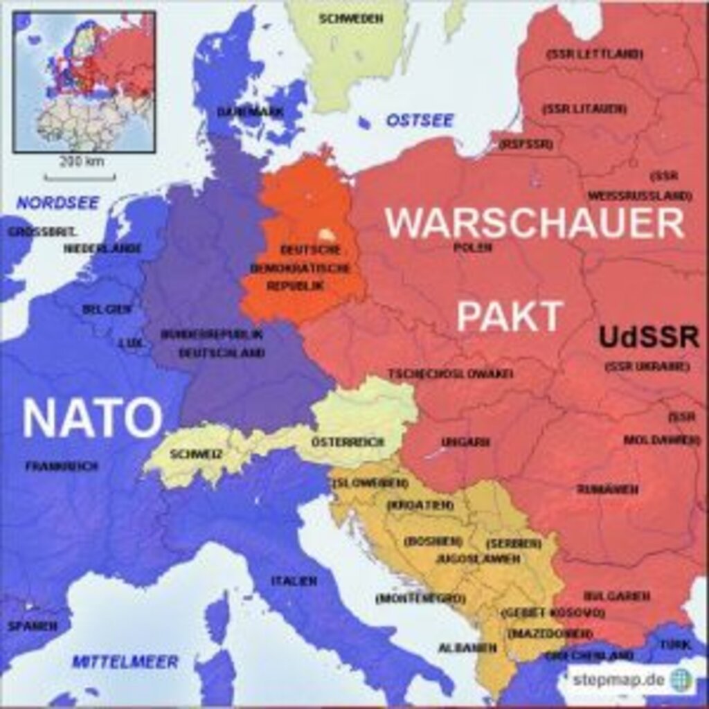 Така Европа и светът се оказват разделени на два военно-политически блока, спусната е „желязна завеса“ и всяко действие на една от страните съответно се възприема като враждебно от другата.